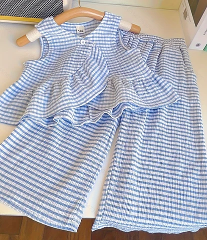 Girls Summer Sleeveless Top & Wide Leg Pants Suit