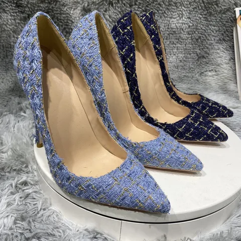 Wathet Sexy 12cm Wool High Heels Brand Design