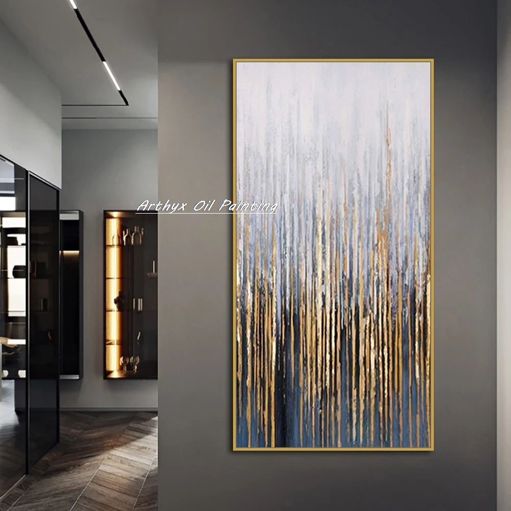 Arthyx,Large Handpainted Gold Oil Painting On Canvas,Abstract Art Decorative Picture,Living Room,Entry & Mudroom,Wall Decoration