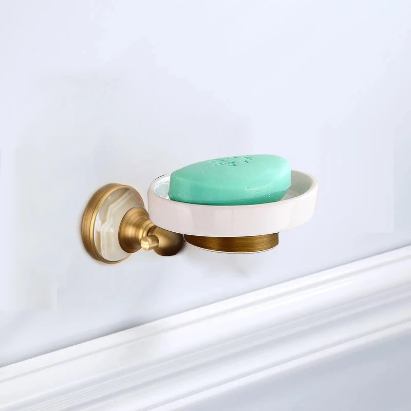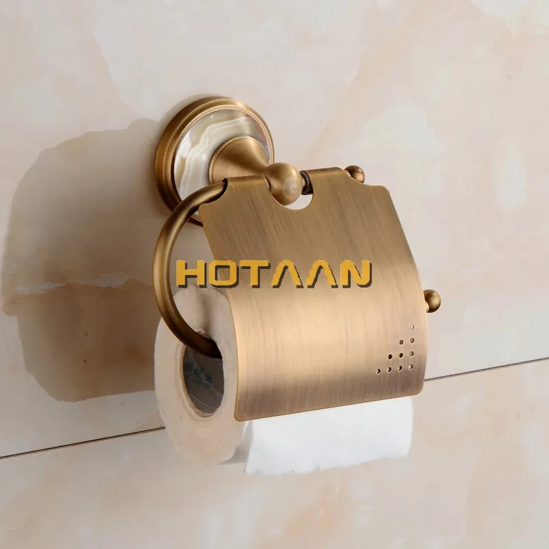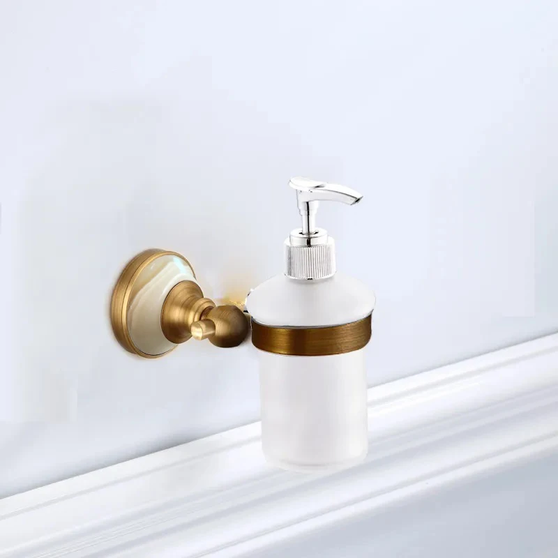 Antique Brushed Solid Brass Bathroom Accessories Sets European jade base Bathroom Hardware Sets  Retro Bathroom Products