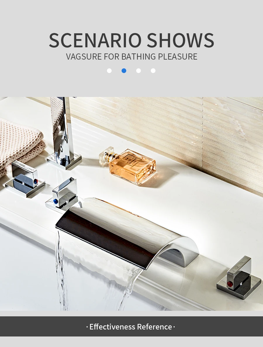 Upgrade your bathing experience with this elegant stainless steel and brass chromed cascade waterfall bathtub faucet. Enjoy the luxurious flow of water with the G1/2 bathtub waterfall inlet nozzle.