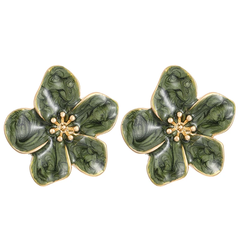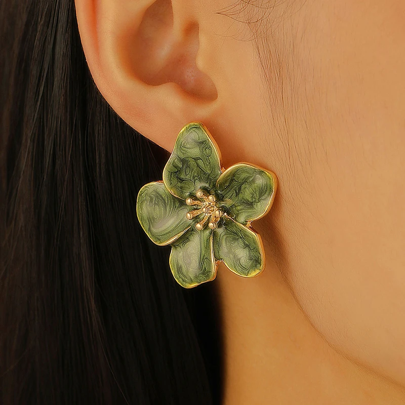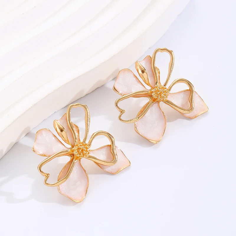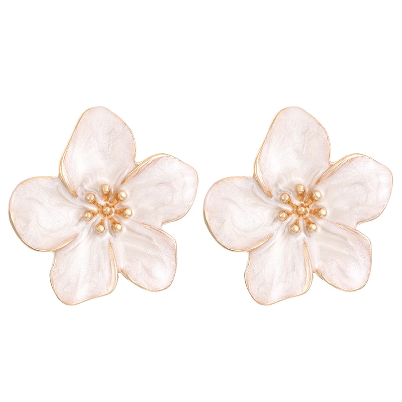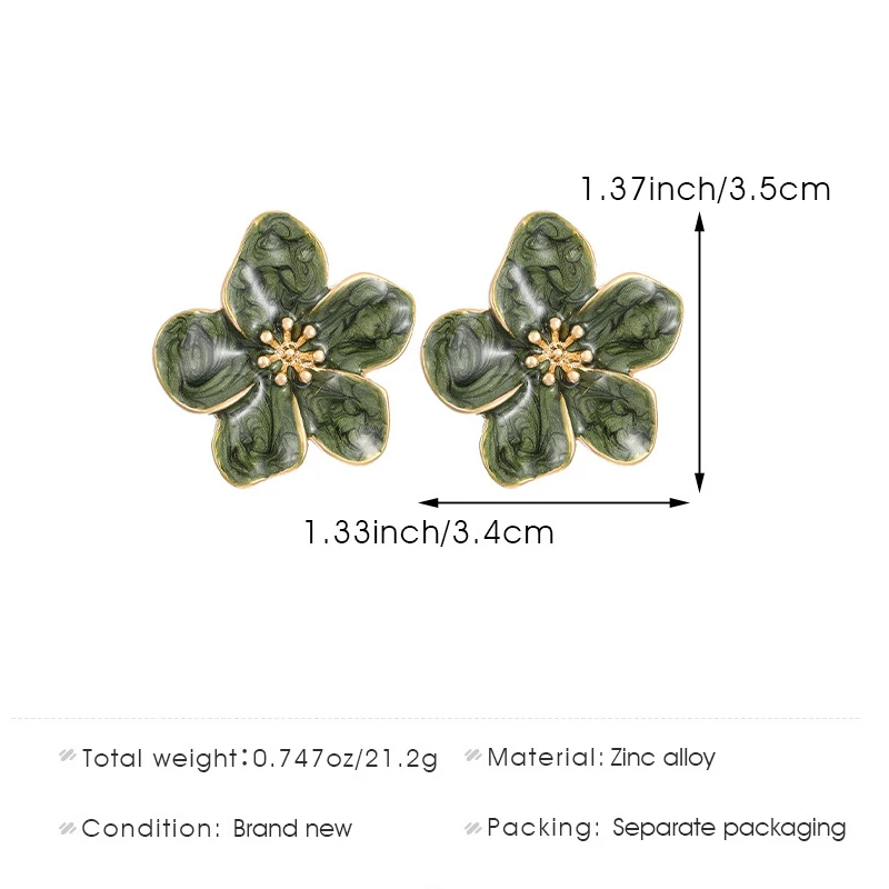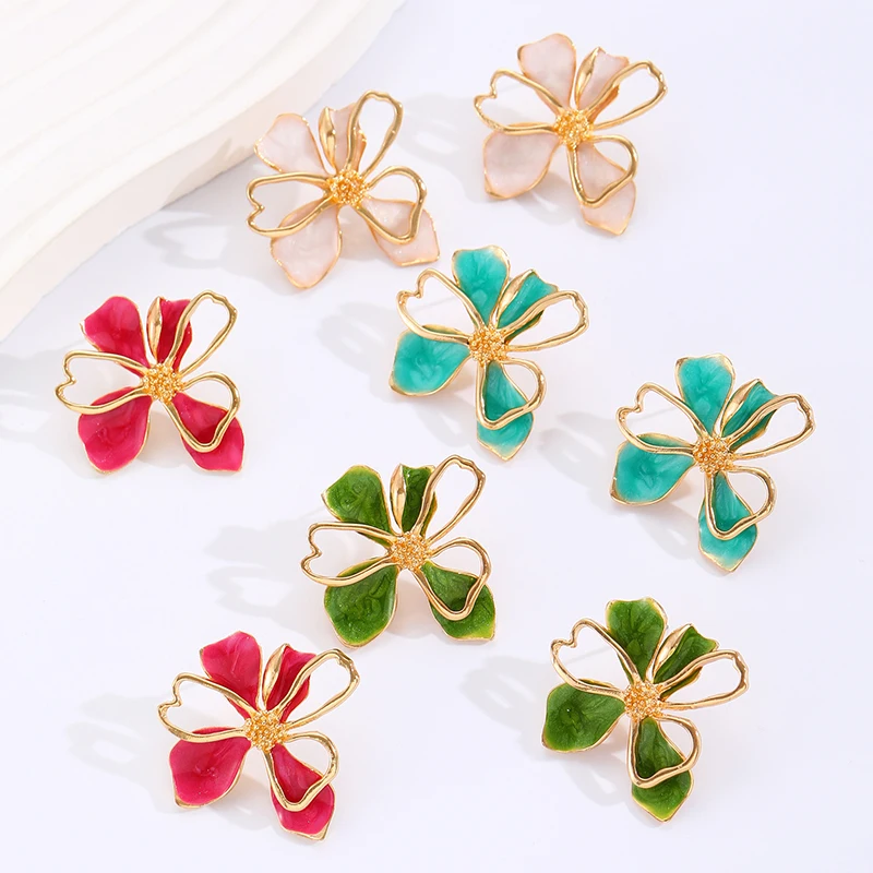 New Fashion Glaze Enameled Flower Stud Earrings For Women Girls French Ins Vintage Korean Wedding Romantic Gold Color Jewelry